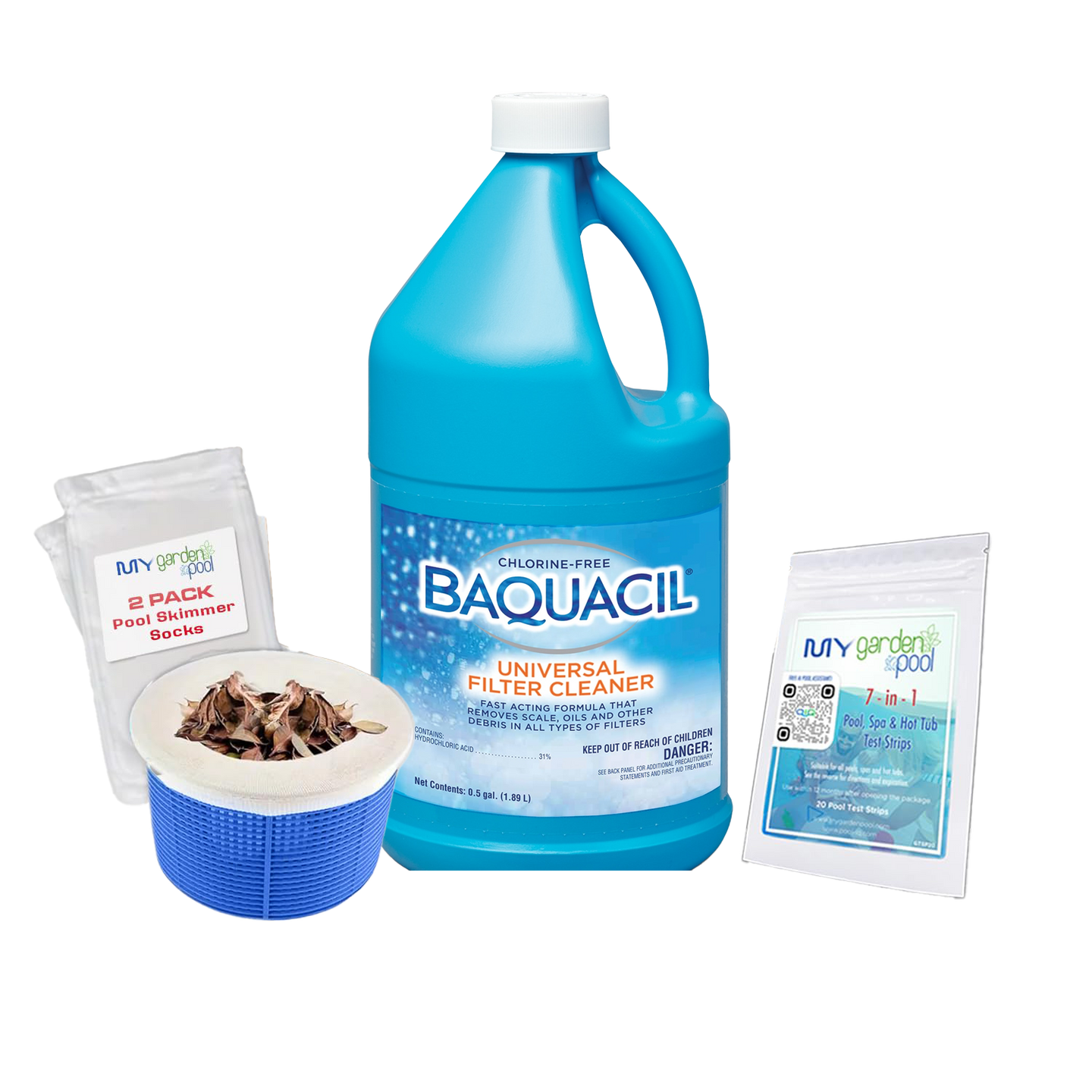 Yes! Every purchase includes useful bonus items like pool test strips, claw gardening gloves, skimmer socks, and more.