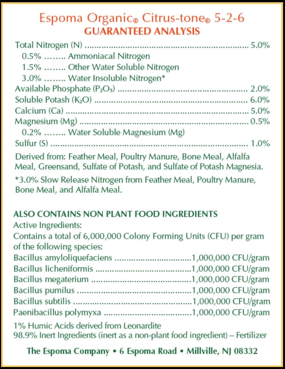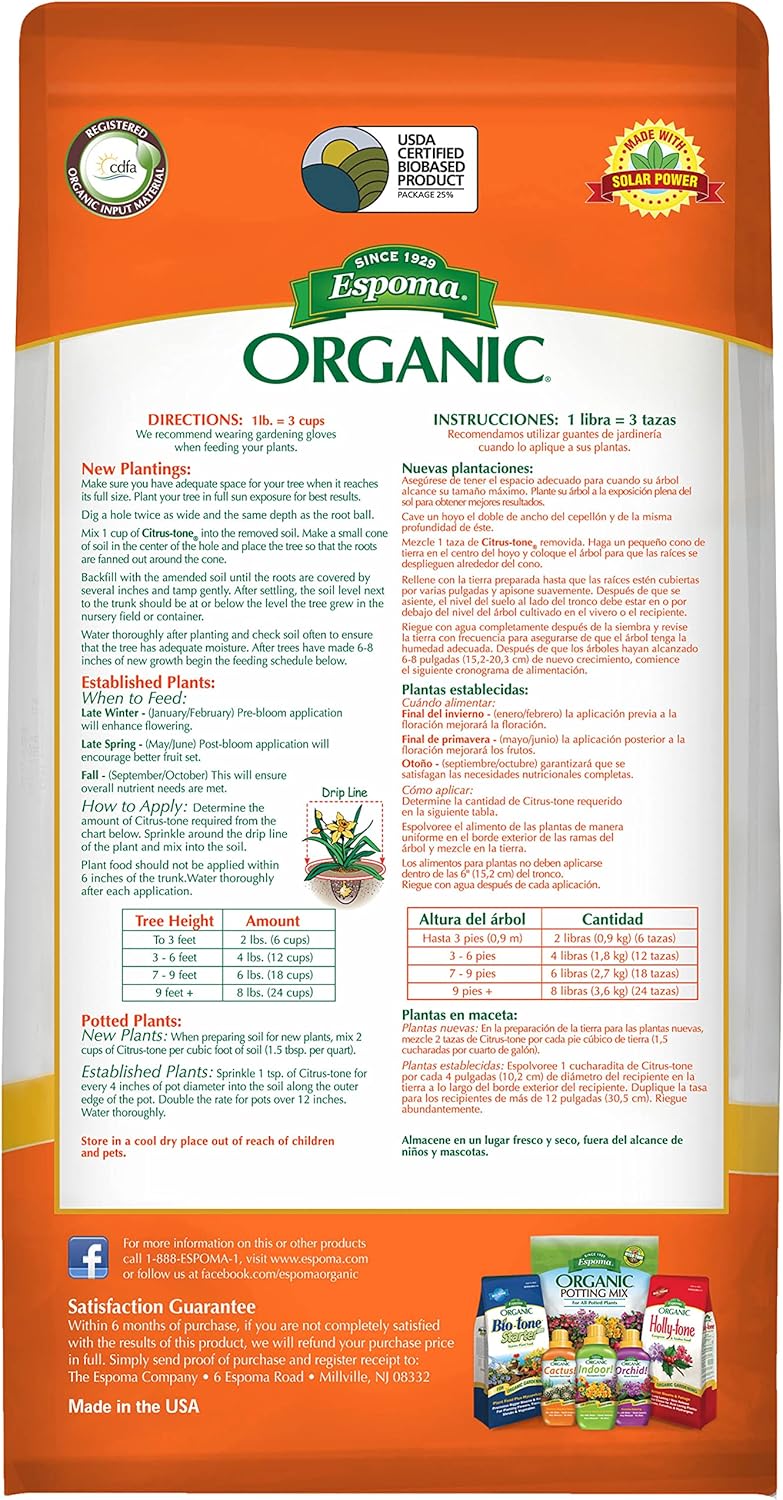 Espoma Citrus-tone 4 lb is the ideal fertilizer for potted citrus, young fruit trees, or balcony growers. Packed with natural nutrients and Bio-tone® microbes, it’s the compact garden essential that delivers maximum results in minimal space.