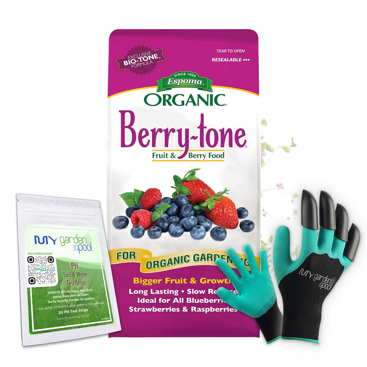 Espoma Berry-tone 18 lb – Organic Berry Fertilizer + Free Claw Gloves & Soil pH Test Kit
