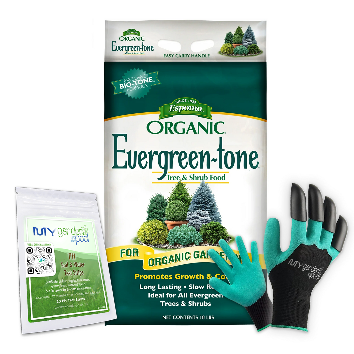 Espoma Evergreen-tone 18 lb – Fertilizer for Evergreens & Shrubs + Free Claw Gloves & Soil pH Test Kit