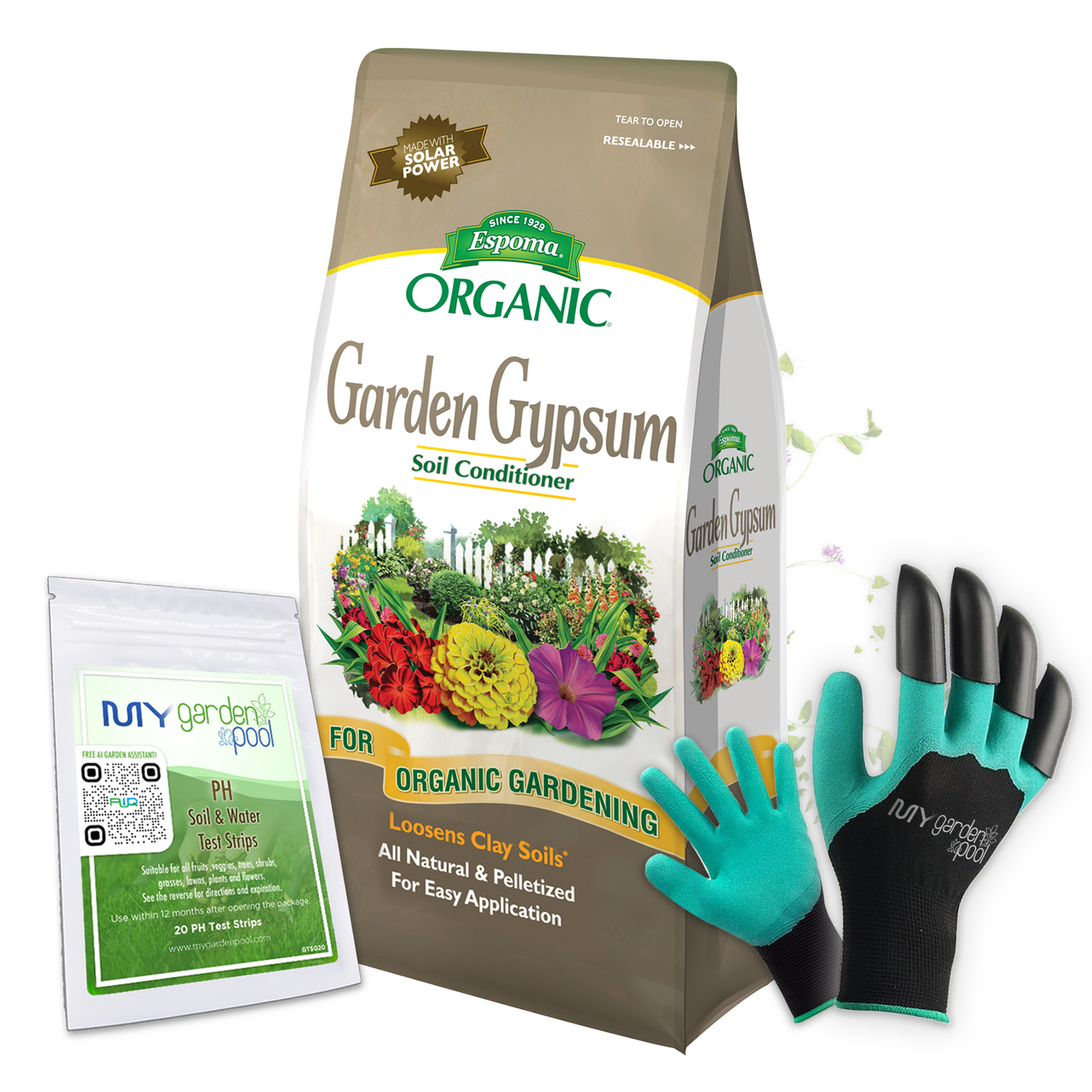 Espoma Garden Gypsum 6 lb – Organic Soil Conditioner for Clay Soil – Includes Claw Gloves & Soil pH Test Kit