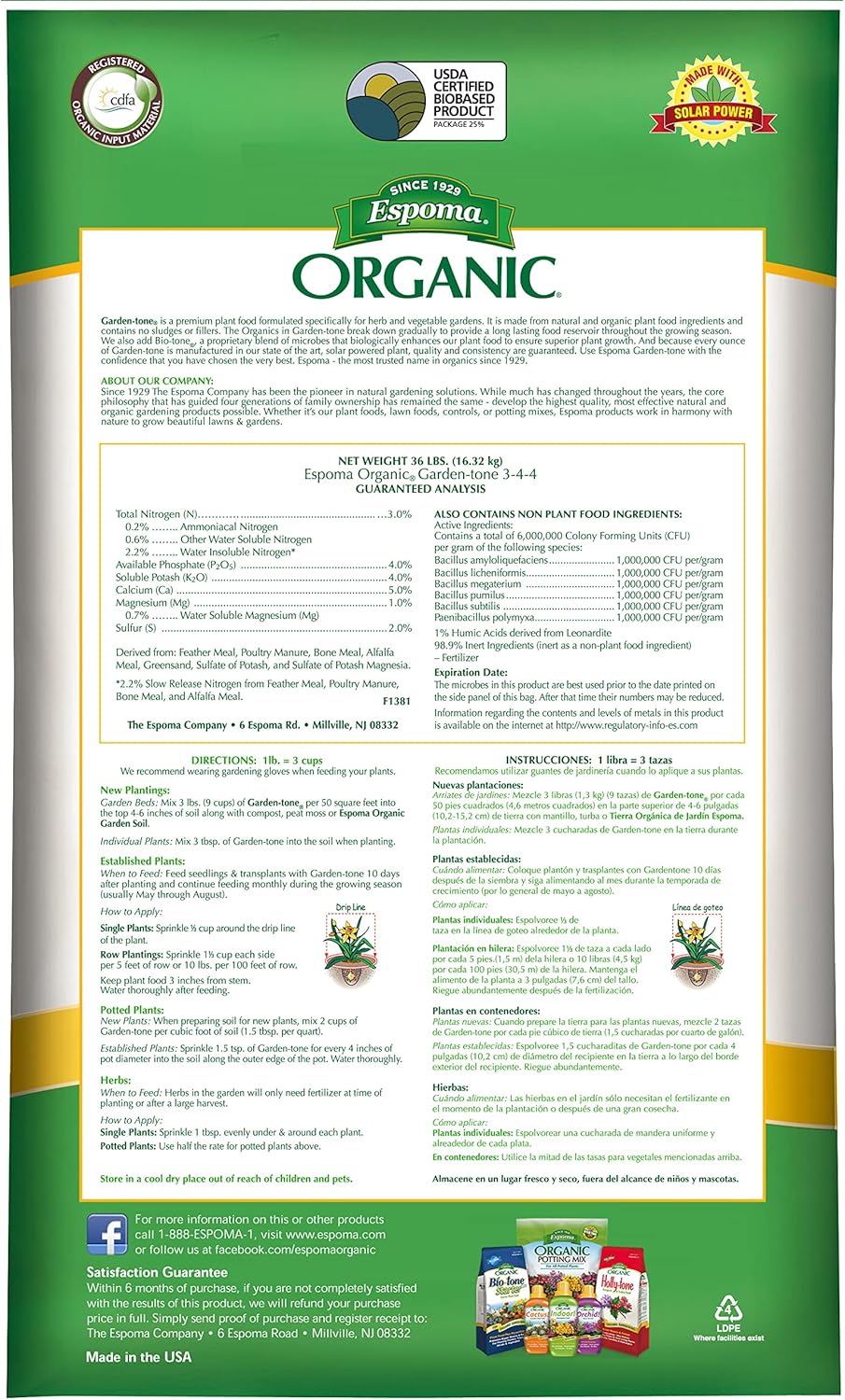 - OMRI Listed for organic gardening