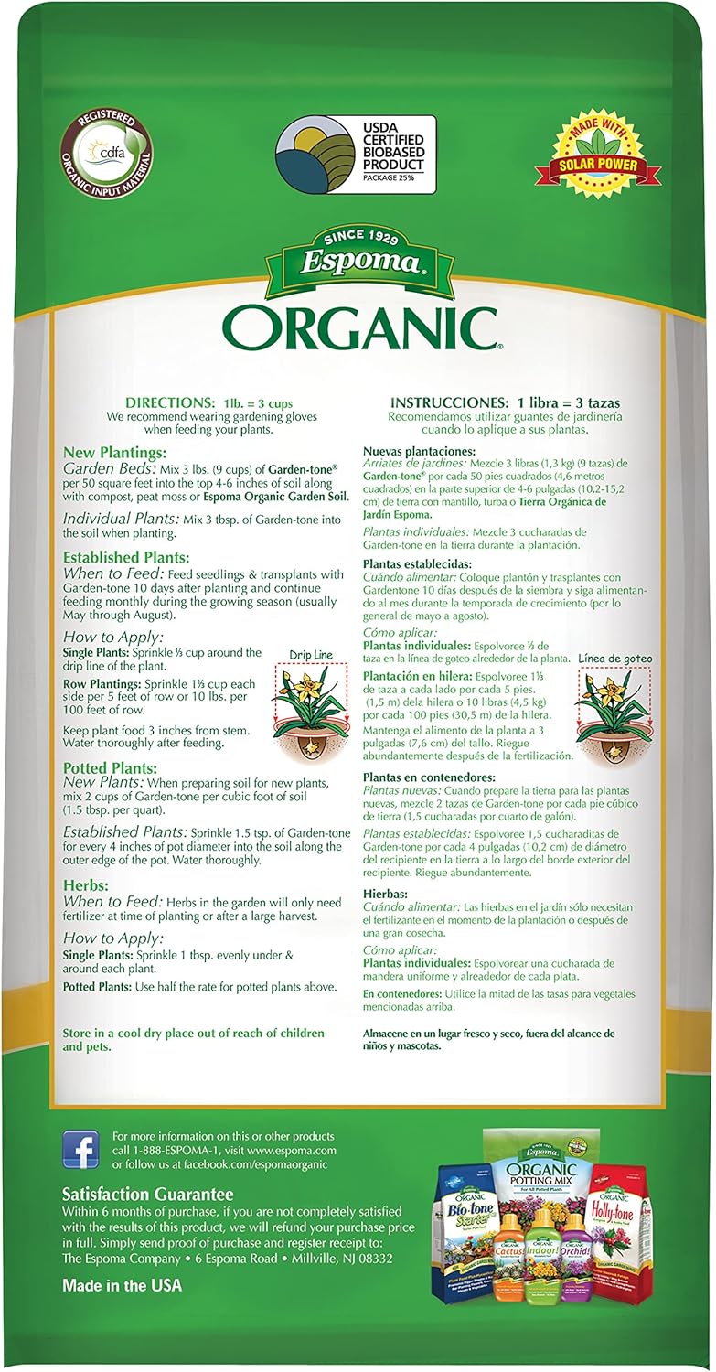 Espoma Garden-tone 8 lb is the perfect all-purpose organic fertilizer for home gardeners growing vegetables, herbs, and even flowers. This slow-release granular formula provides long-lasting nutrition that encourages healthy roots, leafy growth, and abundant harvests.