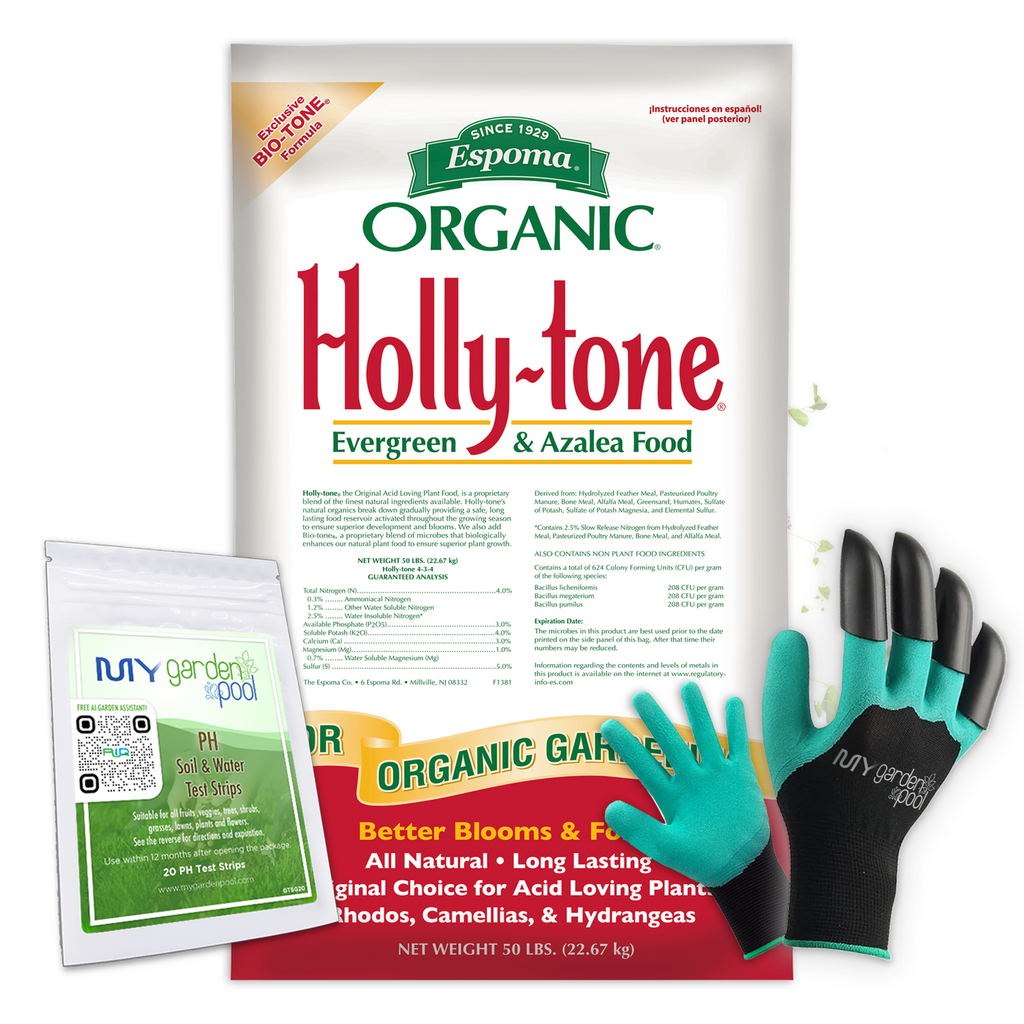 Espoma Holly-tone 50 lb – For Acid-Loving Plants + Free Claw Gloves & pH Test Kit