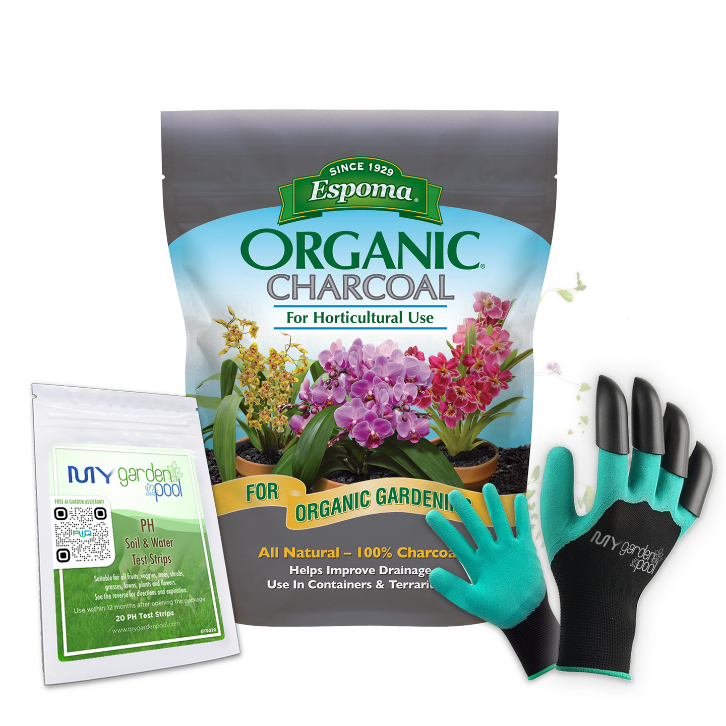 Espoma Horticultural Charcoal 4 qt – Natural Drainage Enhancer for Potting Soil – Bonus Gloves & Soil pH Test Kit