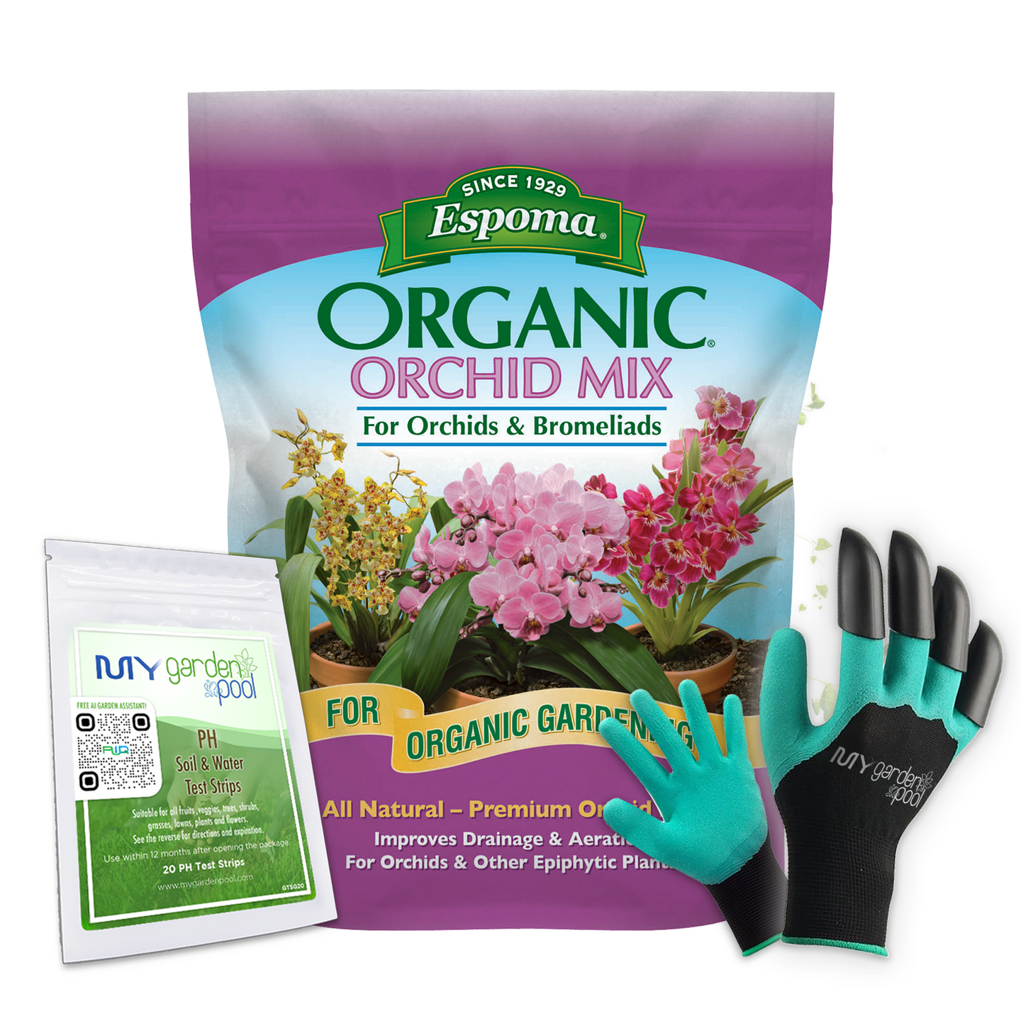Espoma Organic Orchid Mix 4 qt – Premium Bark-Based Blend for Orchids – Free Claw Gloves & Soil pH Test Kit