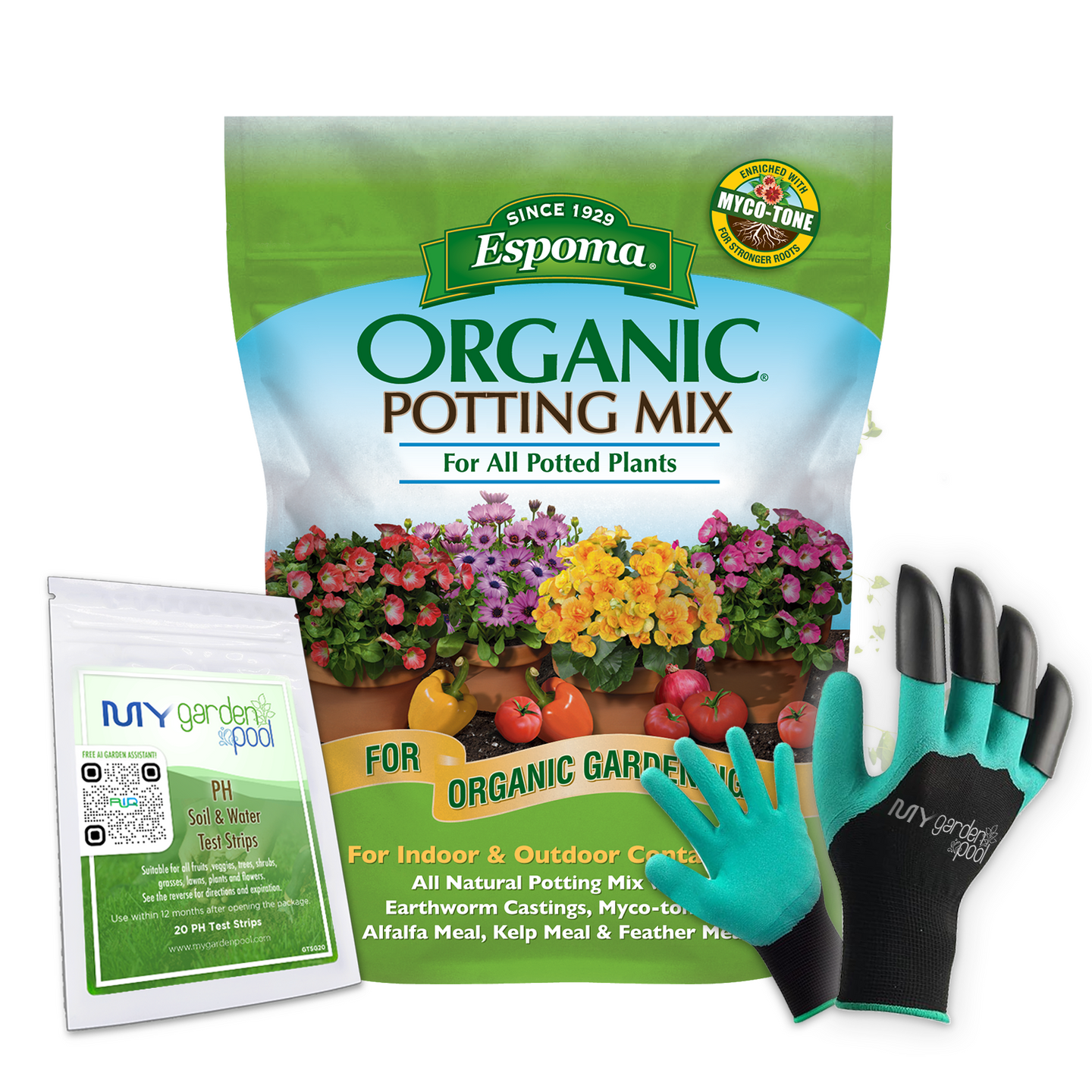Espoma Organic Potting Mix 4 qt – All-Natural Indoor & Outdoor Planting Soil – Bonus Claw Gloves & Soil pH Test Kit