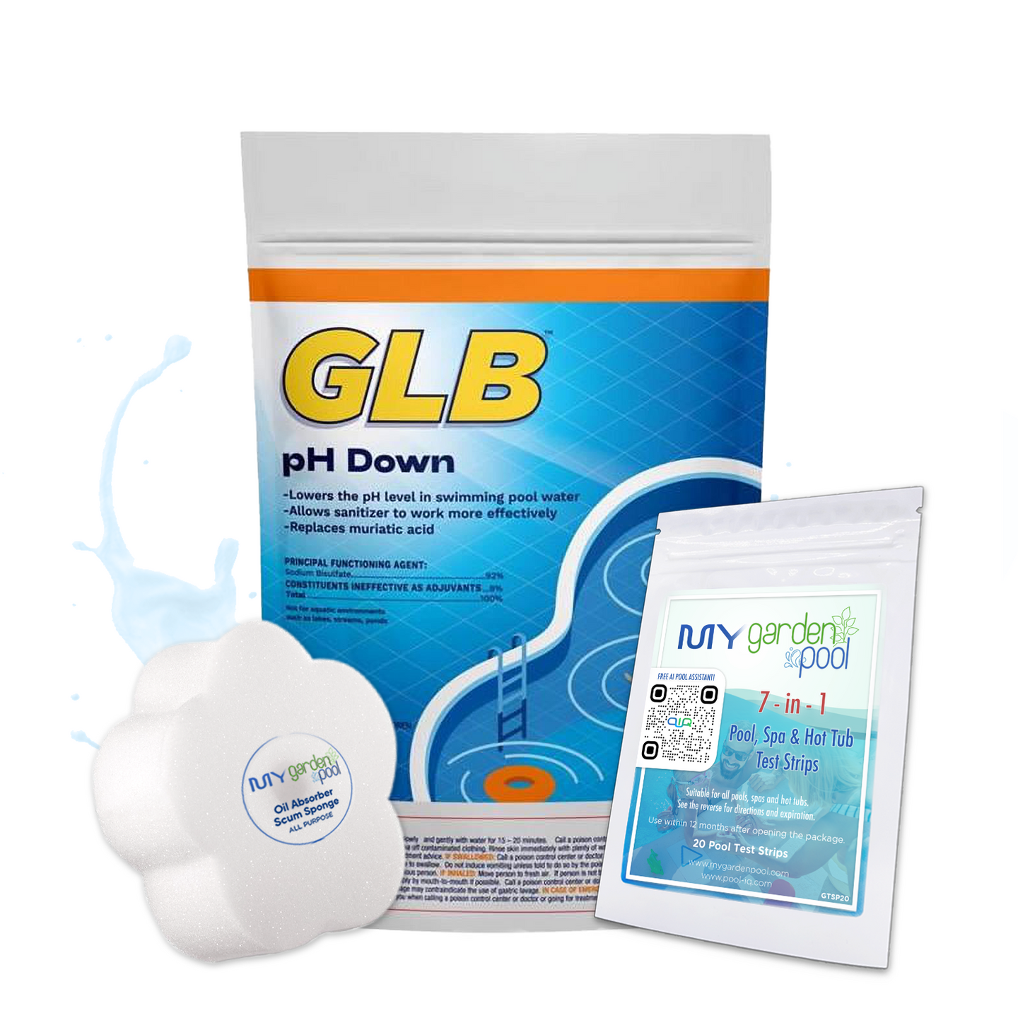 - Includes My Garden Pool 20 Ct. Test Strips and Flower Oil-Absorbing Scum Sponge.