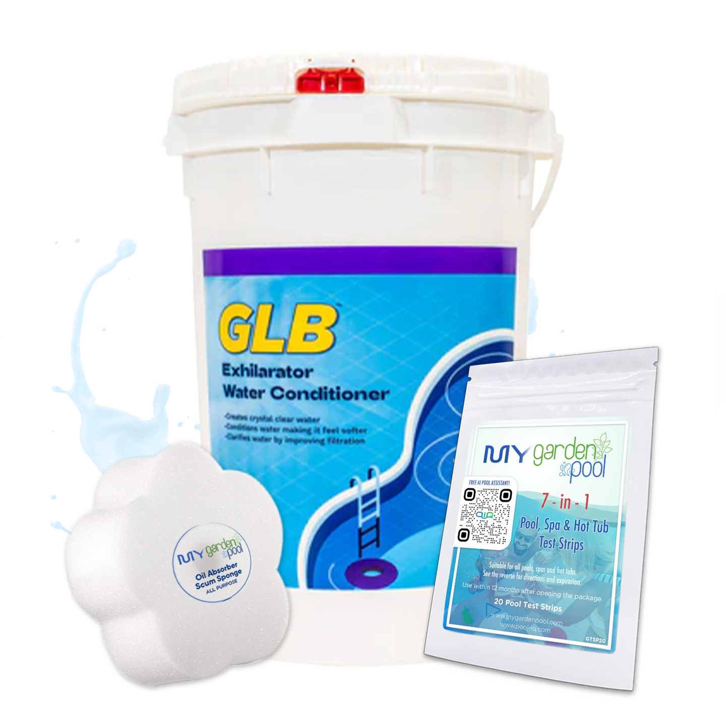 GLB Exhilarator Water Conditioner 45 lbs – Large Pack Pool Conditioner – Enhances Swimmer Comfort – Includes 2 Scum Socks and 7-in-1 Test Strips