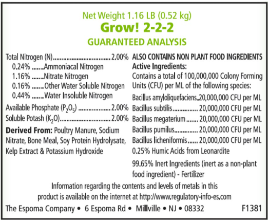 Espoma, Certified organic and EPA compliant, Fertilizer, Spring, Summer, Fall,