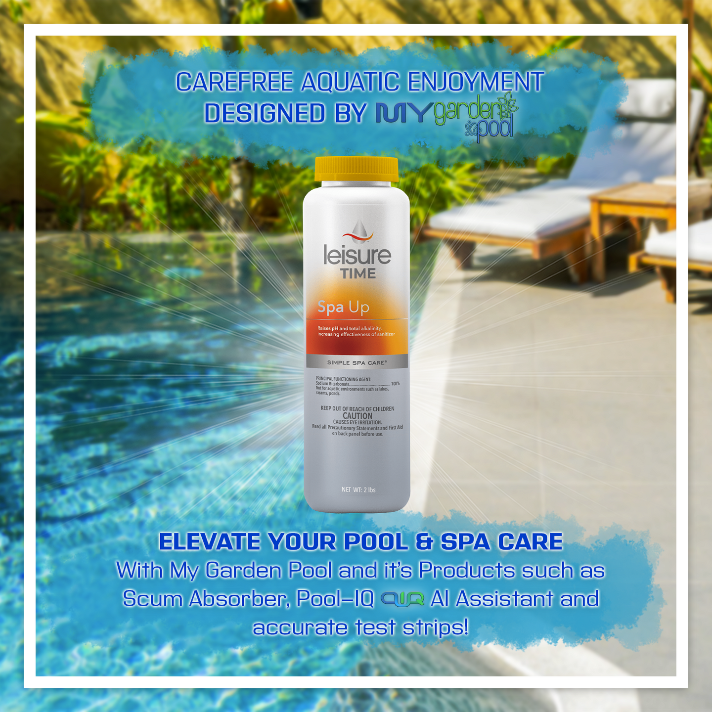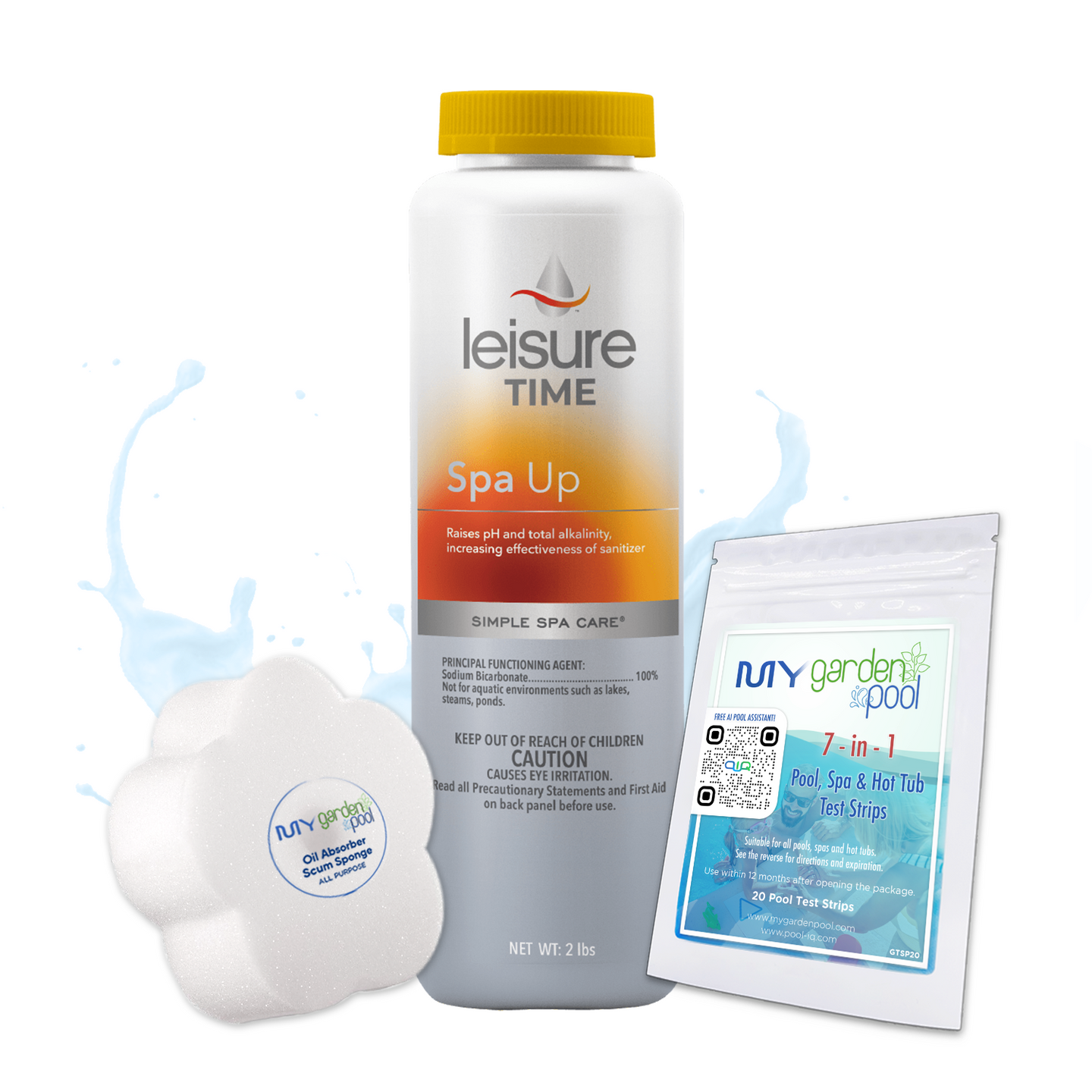 Leisure Time Spa Up 2 lbs – Raises Spa Water pH Levels Safely – Quick Dissolving Formula – Includes Scum Sponge and 7-in-1 Test Strips