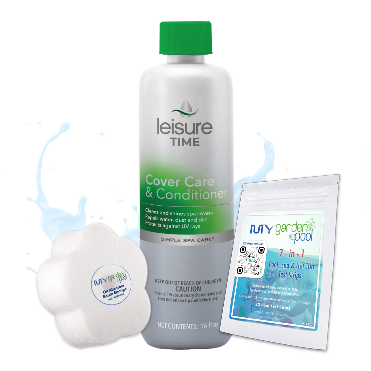 Leisure Time Cover Care & Conditioner 16 fl oz – Protects and Shines Spa Covers – UV Protection – Includes Scum Sponge and 7-in-1 Test Strips