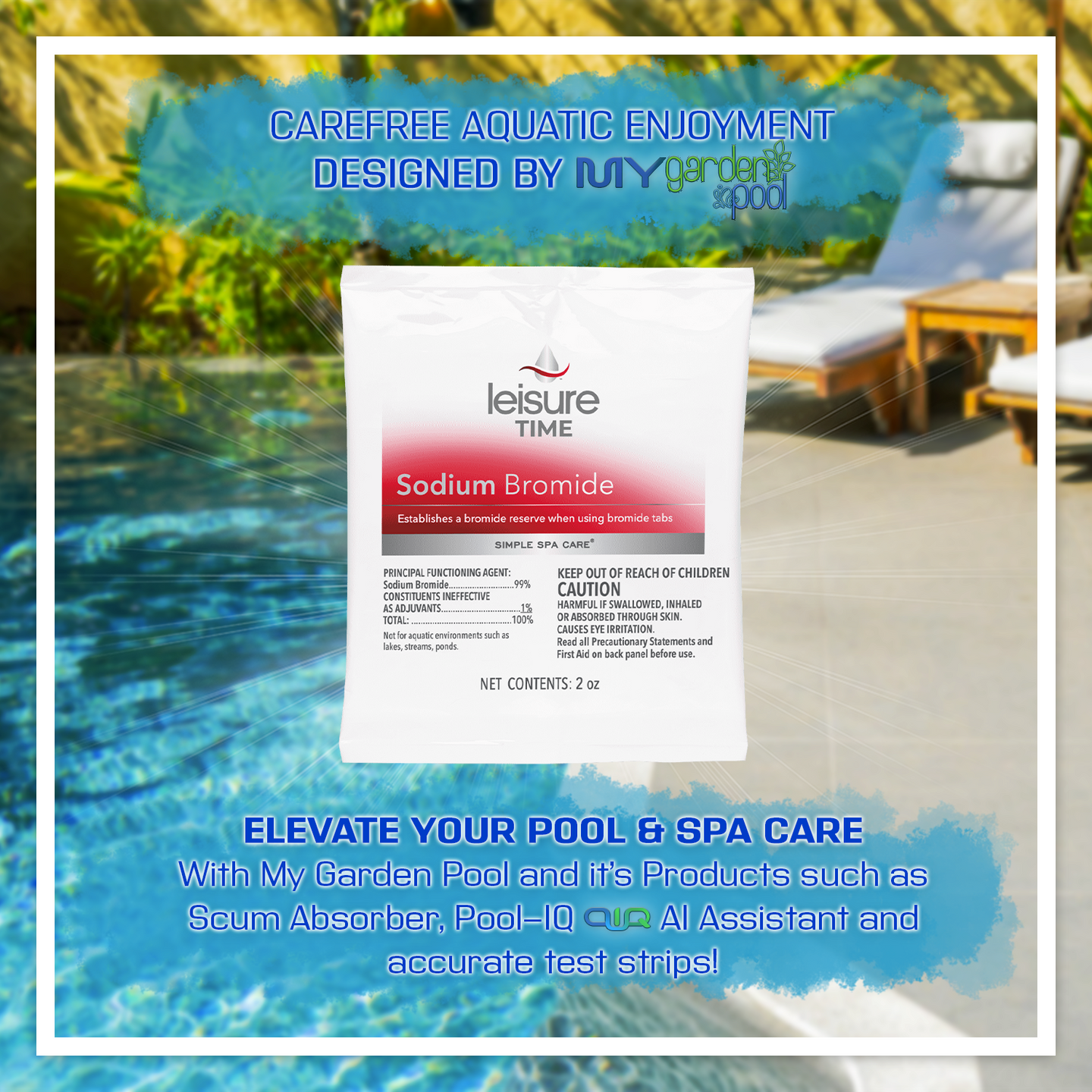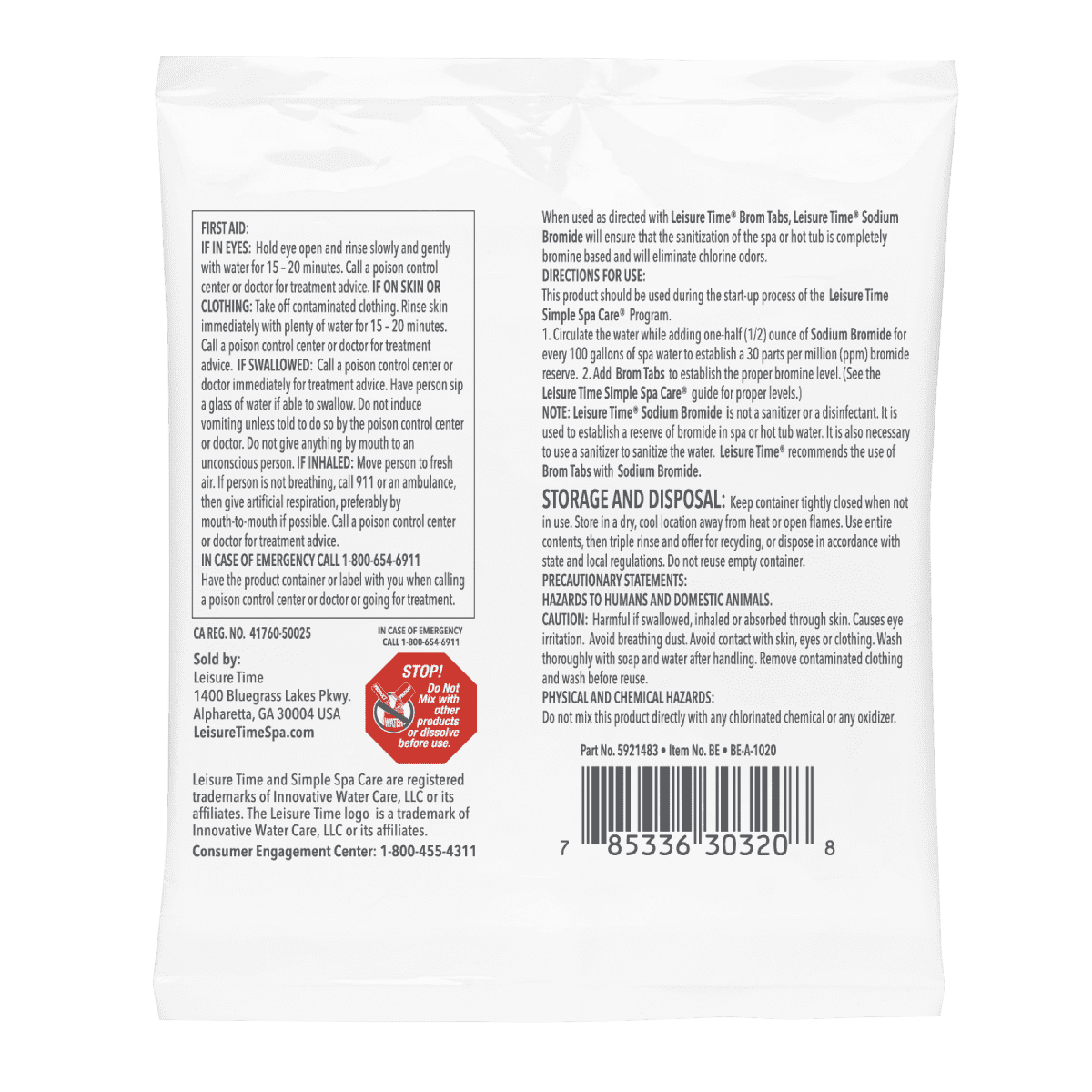 Start your spa or hot tub on the right note with Leisure Time BE Sodium Bromide, a convenient 2 oz pouch designed for bromine-based sanitizing systems. This essential product ensures proper bromide levels, activating with bromine sanitizers to eliminate bacteria and organic contaminants, keeping your spa water clean, clear, and safe.