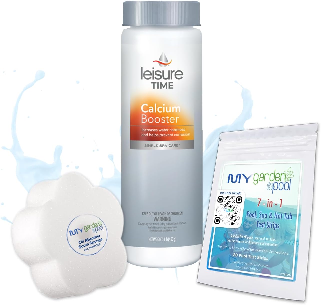 Leisure Time Calcium Booster 1 lb – Prevents Spa Water Corrosion – Protects Spa Surfaces – Includes Scum Sponge and 7-in-1 Test Strips