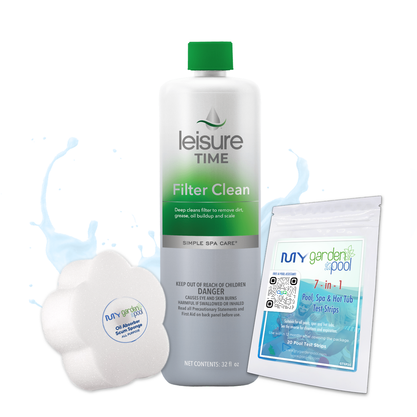 Includes My Garden Pool Test Strips & Scum Sponge to simplify your pool and spa care routine!