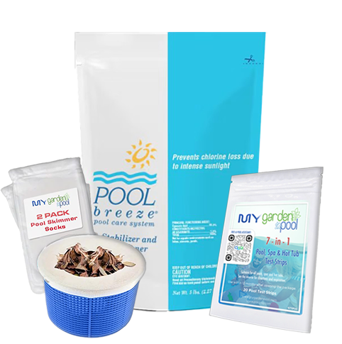Pool Breeze Chlorine Stabilizer – 5 lb Bag – Protects Chlorine from Sunlight – Includes Scum Socks & Test Strips