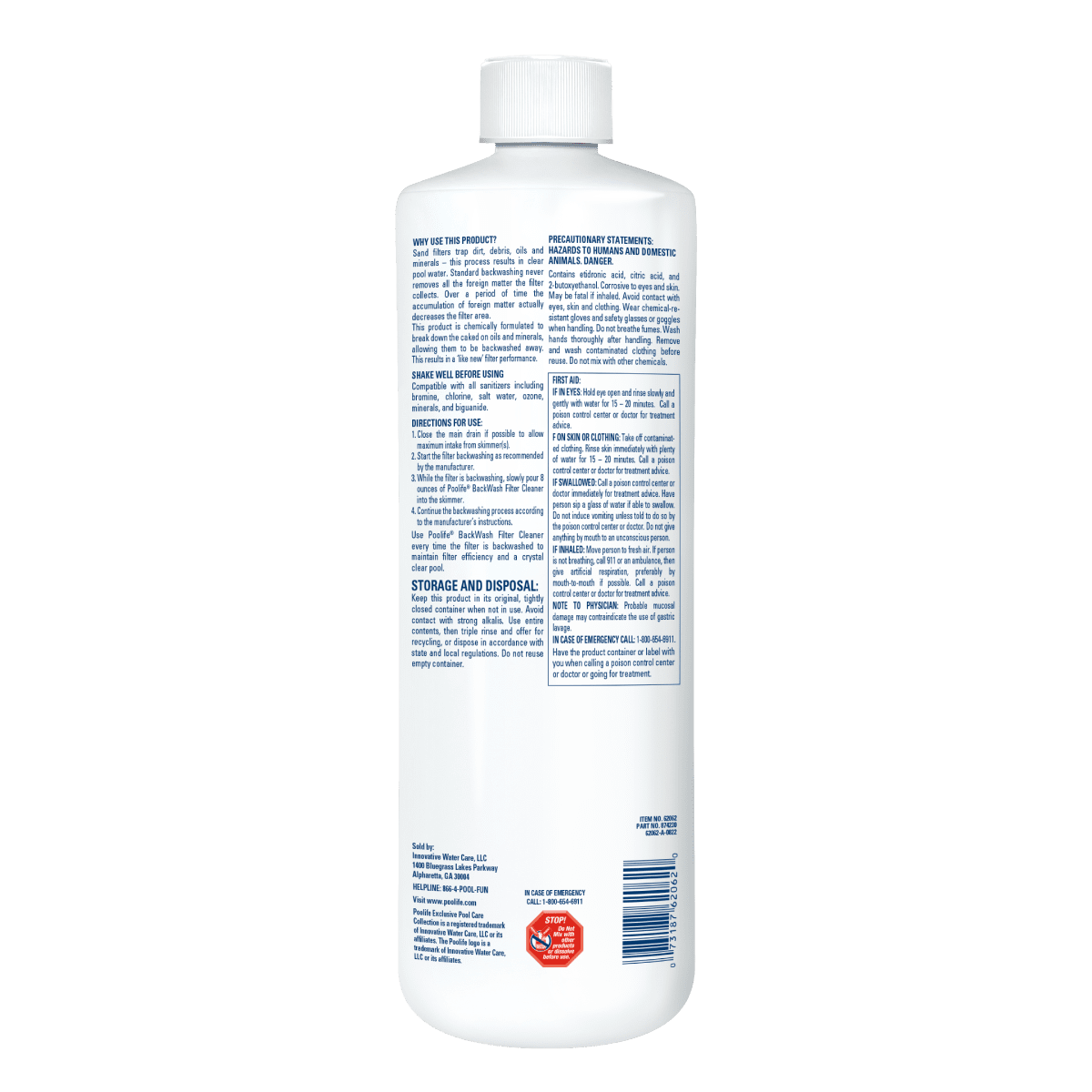 Poolife Backwash Filter Cleaner 32 fl oz is a concentrated cleaning solution formulated to break down grease, oil, and other organic buildup in sand and DE filters. Regular use improves water clarity and extends filter life by keeping media clean and effective.
