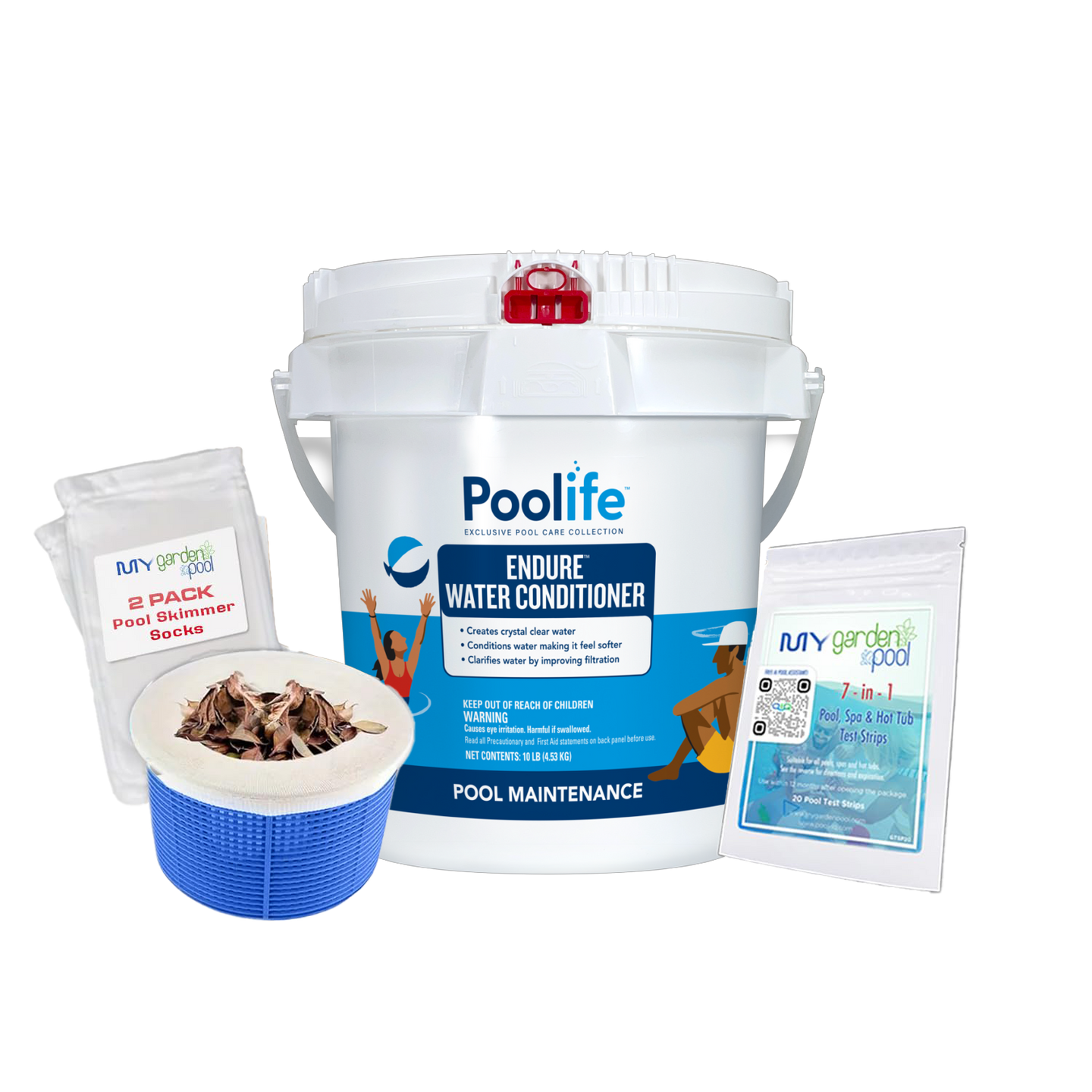 Poolife Endure Water Conditioner 10 lb – Enhances Water Feel & Clarity – Reduces Eye Irritation – Includes 2 Scum Socks and 7-in-1 Test Strips