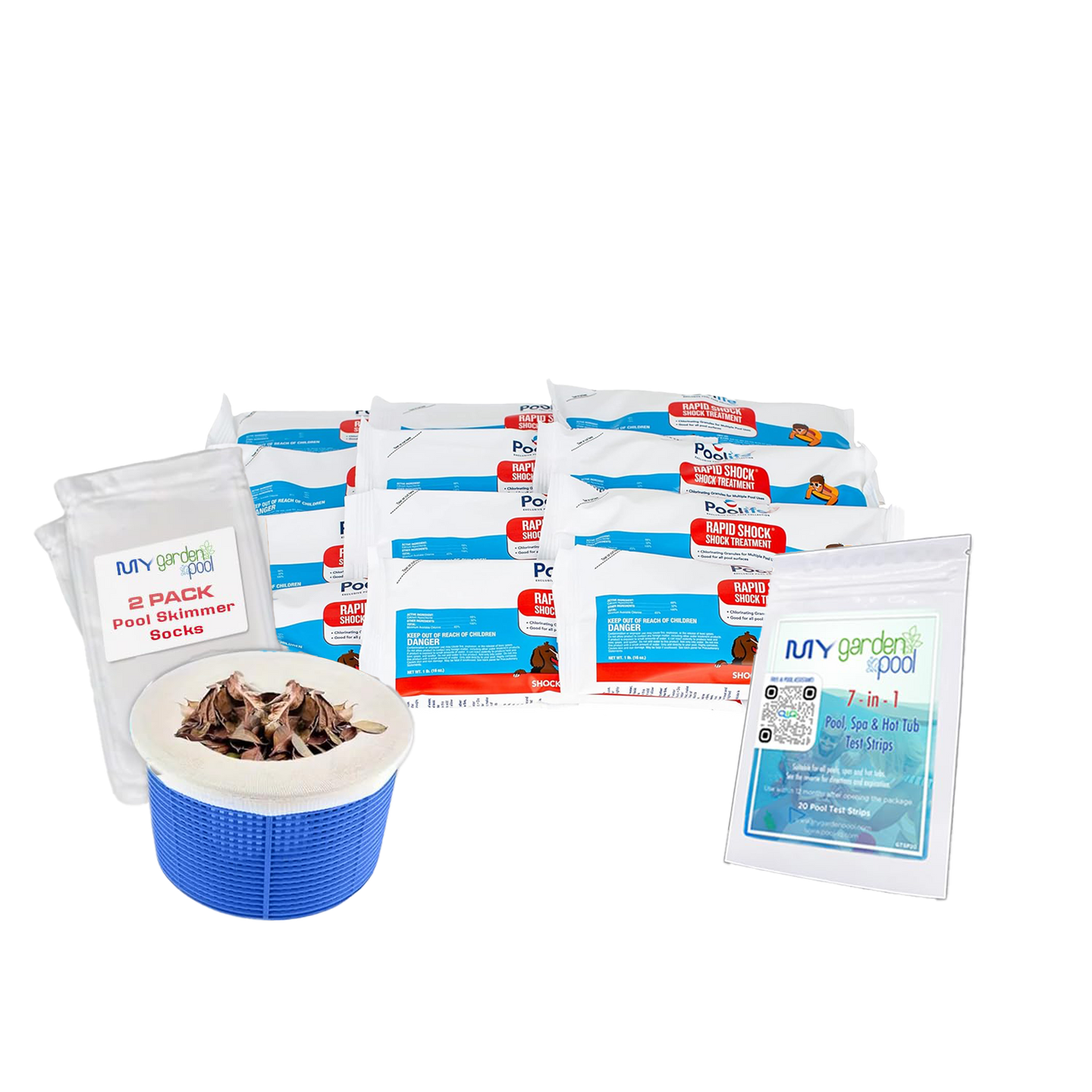 Yes! Every purchase includes useful bonus items like pool test strips, claw gardening gloves, skimmer socks, and more.