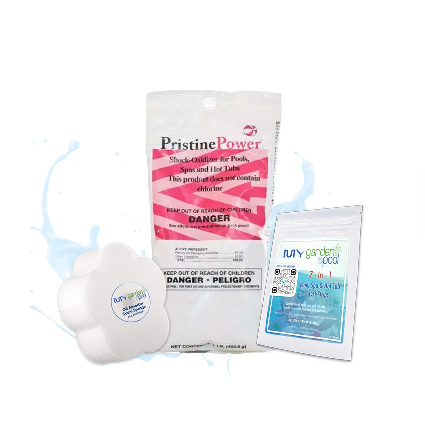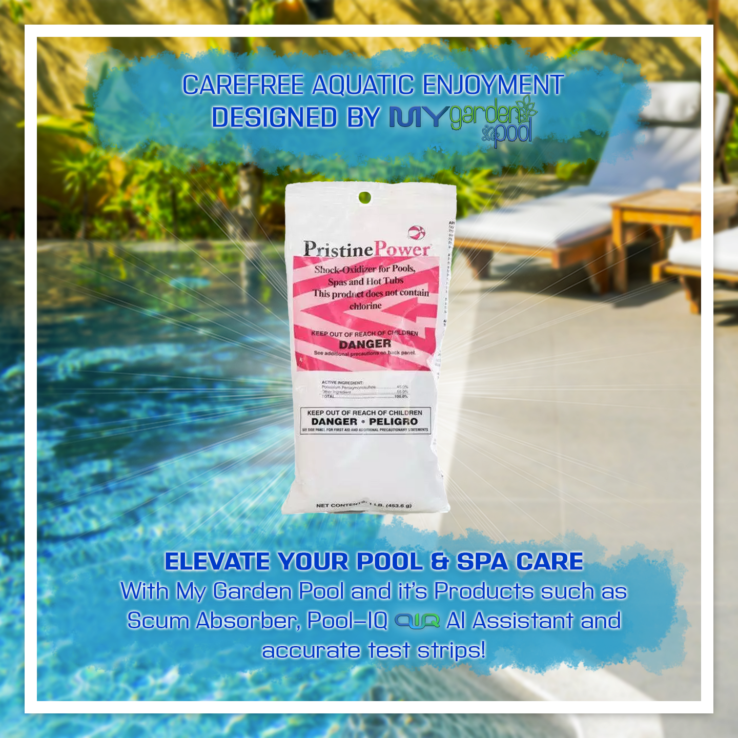 PristinePower 1 lb – Fast-Dissolving Non-Chlorine Oxidizing Shock – Restores Sparkling Water Without Harsh Chemicals – Includes Scum Sponge & Test Strips