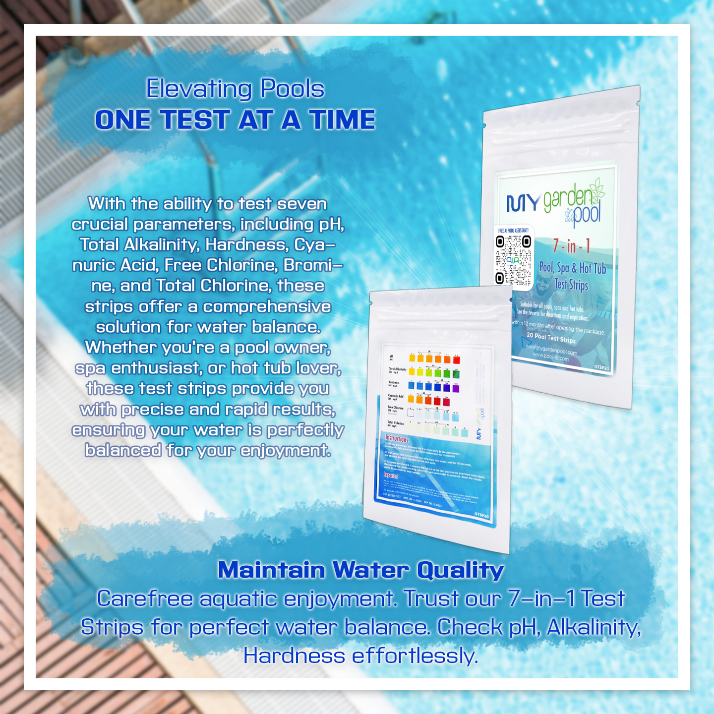 7-in-1 Pool & Spa Test Strips – Quick, accurate water testing for perfect balance.