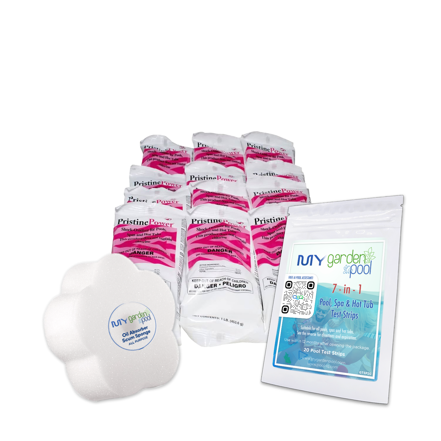 PristinePower 1 lb x 12 Pack provides a season-long supply of fast-acting, non-chlorine oxidizing shock treatment. This powerful formula breaks down organic waste, restores water clarity, and keeps your pool sparkling clean without harsh chemicals or chlorine odor. Ideal for routine weekly treatment or post-party recovery.