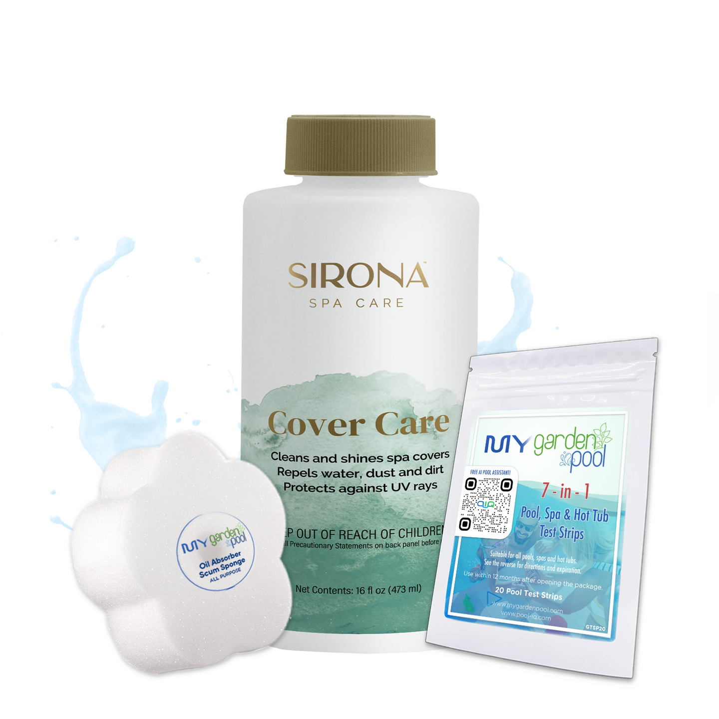 Sirona Cover Care 16 fl oz – Protects and Conditions Spa Covers – UV Shield and Shine – Includes Scum Sponge and 7-in-1 Test Strips