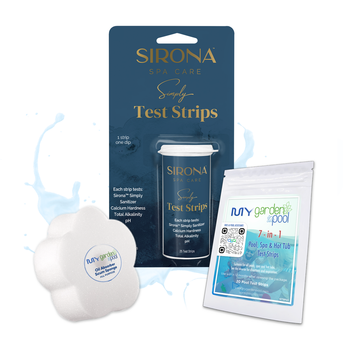 Includes My Garden Pool Test Strips & Scum Sponge for enhanced spa care!