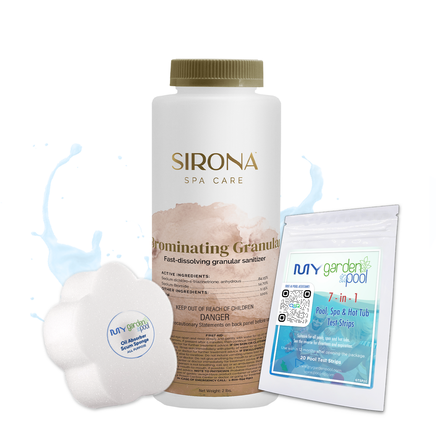 Sirona Brominating Granular 2 lbs – Fast-Acting Spa Bromine Shock – Maintains Safe Water – Includes Scum Sponge and 7-in-1 Test Strips